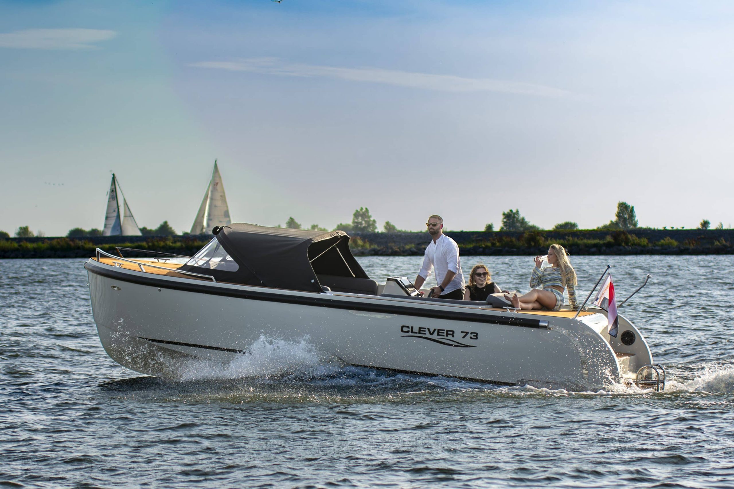 De Clever 73 is een stijlvolle tender van 7,28 meter, geschikt voor maximaal 10 personen. Met motoropties van 30 tot 140 pk biedt de boot flexibiliteit voor ontspannen en snelle vaartochten. Verkrijgbaar in diverse kleuren en met optionele luxe zoals een zonnedek, past de Clever 73 bij elke watersporter. De doorvaarthoogte van 1,25 meter en de mogelijkheid tot maatwerk maken het een veelzijdige keuze.